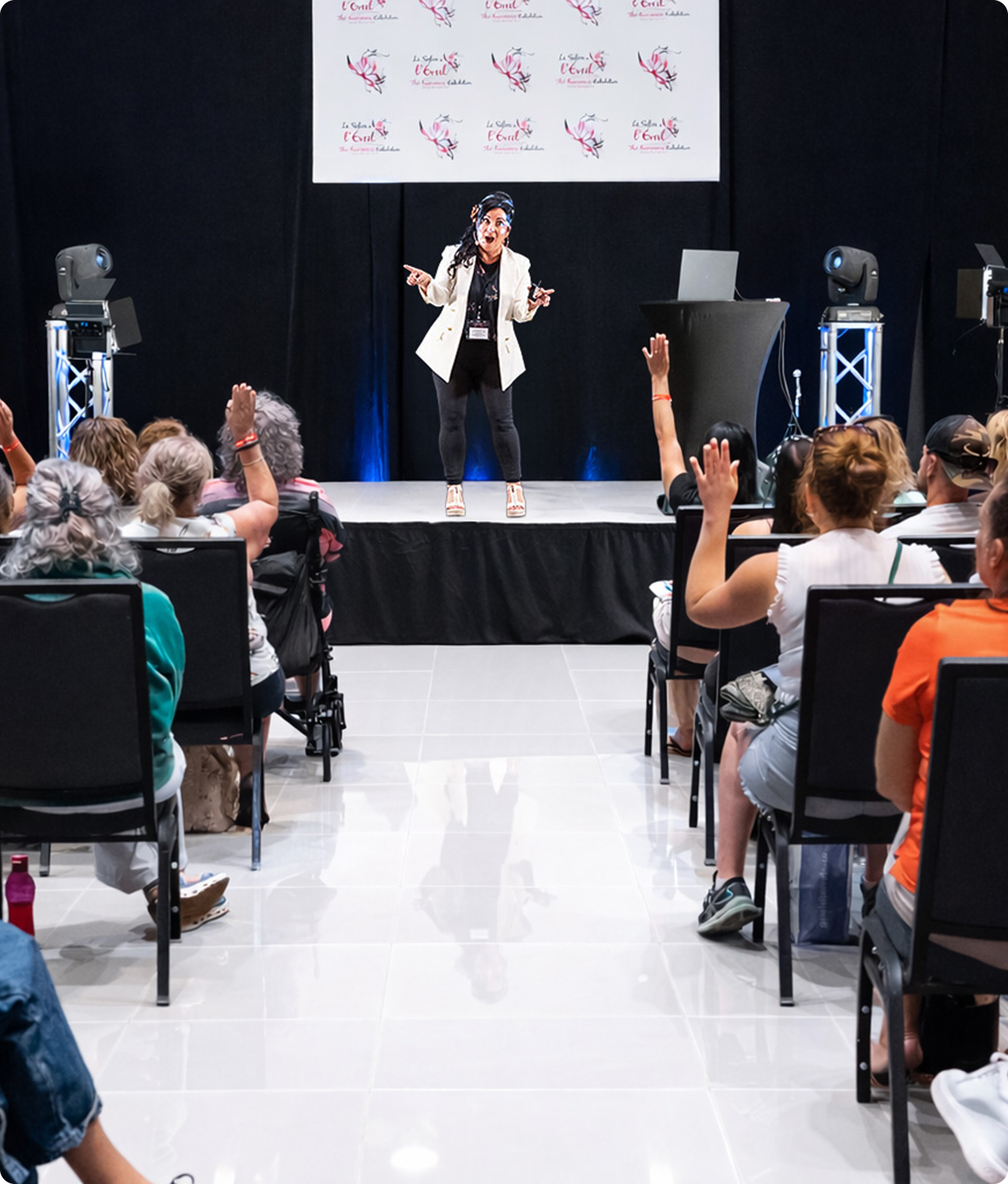 Sur scène, en conférences, en ateliers, en panels, en soirées de médiumnité en présentiel ou virtuel. Chaque rencontre provoque une transformation: une ouverture, une prise de conscience, une connexion au-delà du visible.